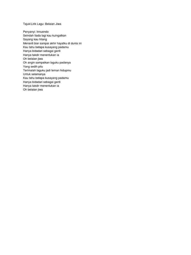 Belaian Jiwa Lyrics By Innuendo Seindah Tiada Lagi Kau